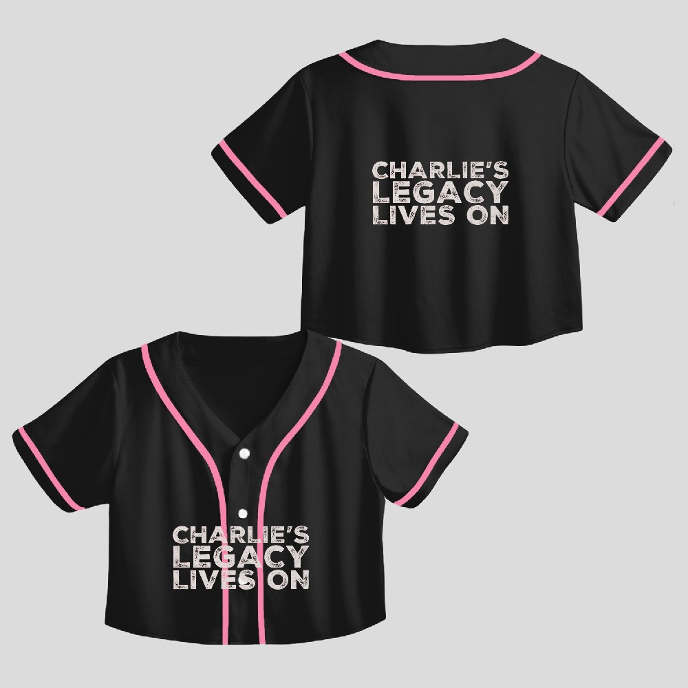 Charlie Kirk Charlie’S Legacy Lives On Justice Faith Based Human Rights Crop Top Baseball Jersey