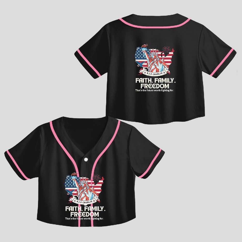Charlie Kirk Faith Family Freedom Rip Charlie Maga Crop Top Baseball Jersey
