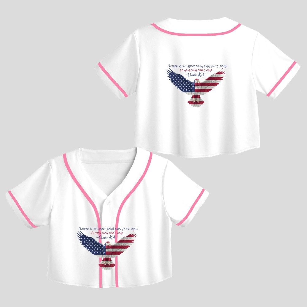 Charlie Kirk Patriotic Eagle Freedom Quote Crop Top Baseball Jersey