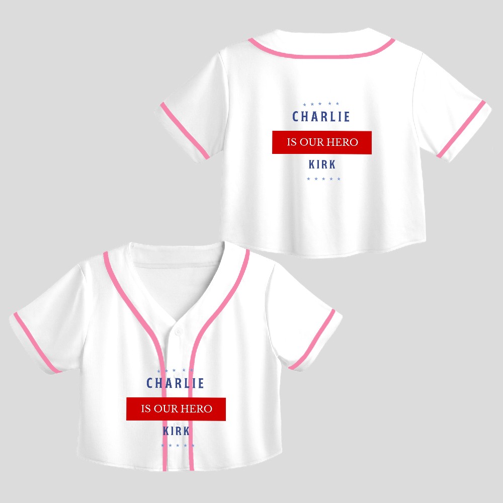 Charlie Kirk My Hero Crop Top Baseball Jersey