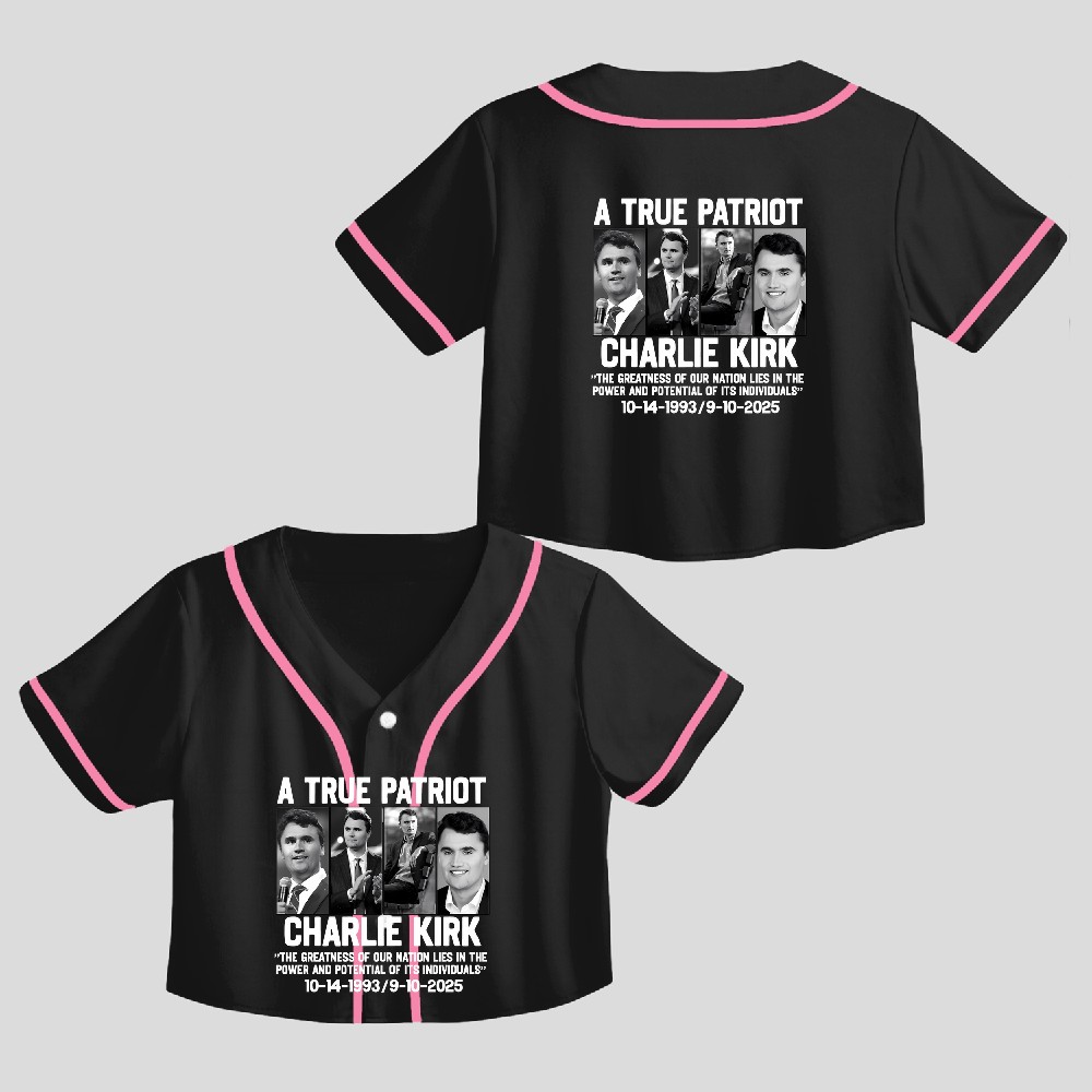 Charlie Kirk Memorial Tribute In Remembrance Of Charlie Kirk Patriotic Memorial Crop Top Baseball Jersey