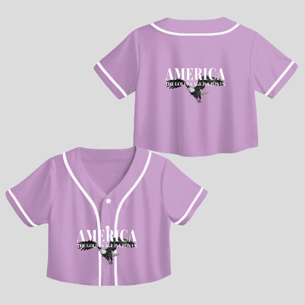 Charlie Kirk Wearing America The Golden Age Is Upon Us 2025 Crop Top Baseball Jersey