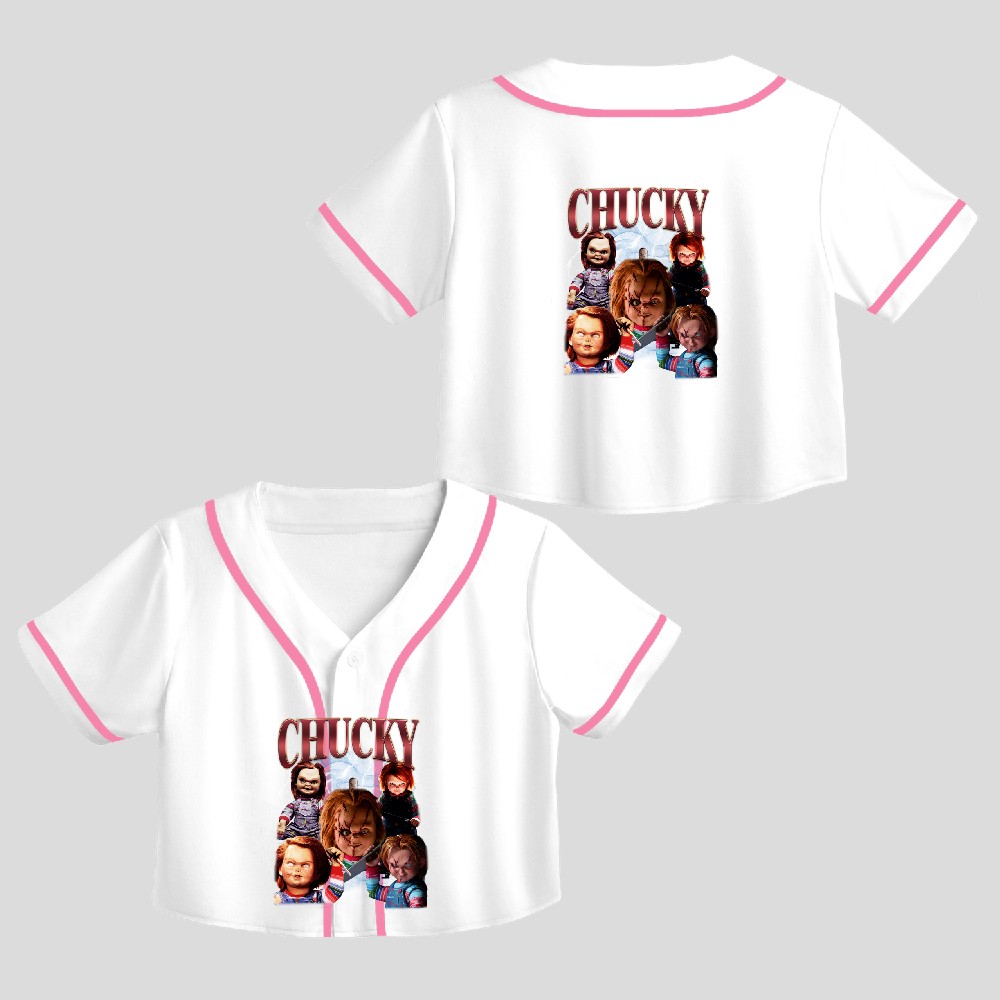 Chucky Horror Series Movie Homage Crop Top Baseball Jersey