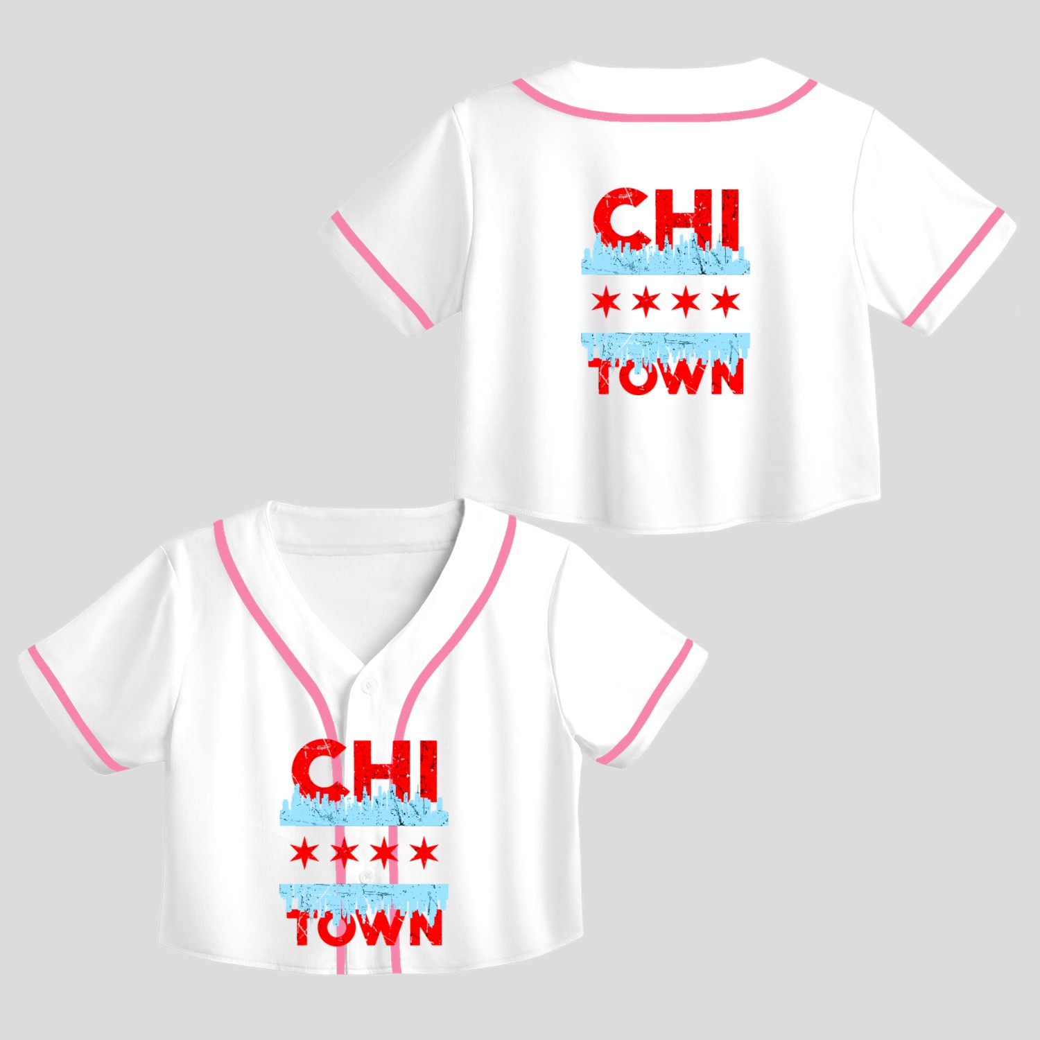Chtown Chicago Flag Skyline Crop Top Baseball Jersey