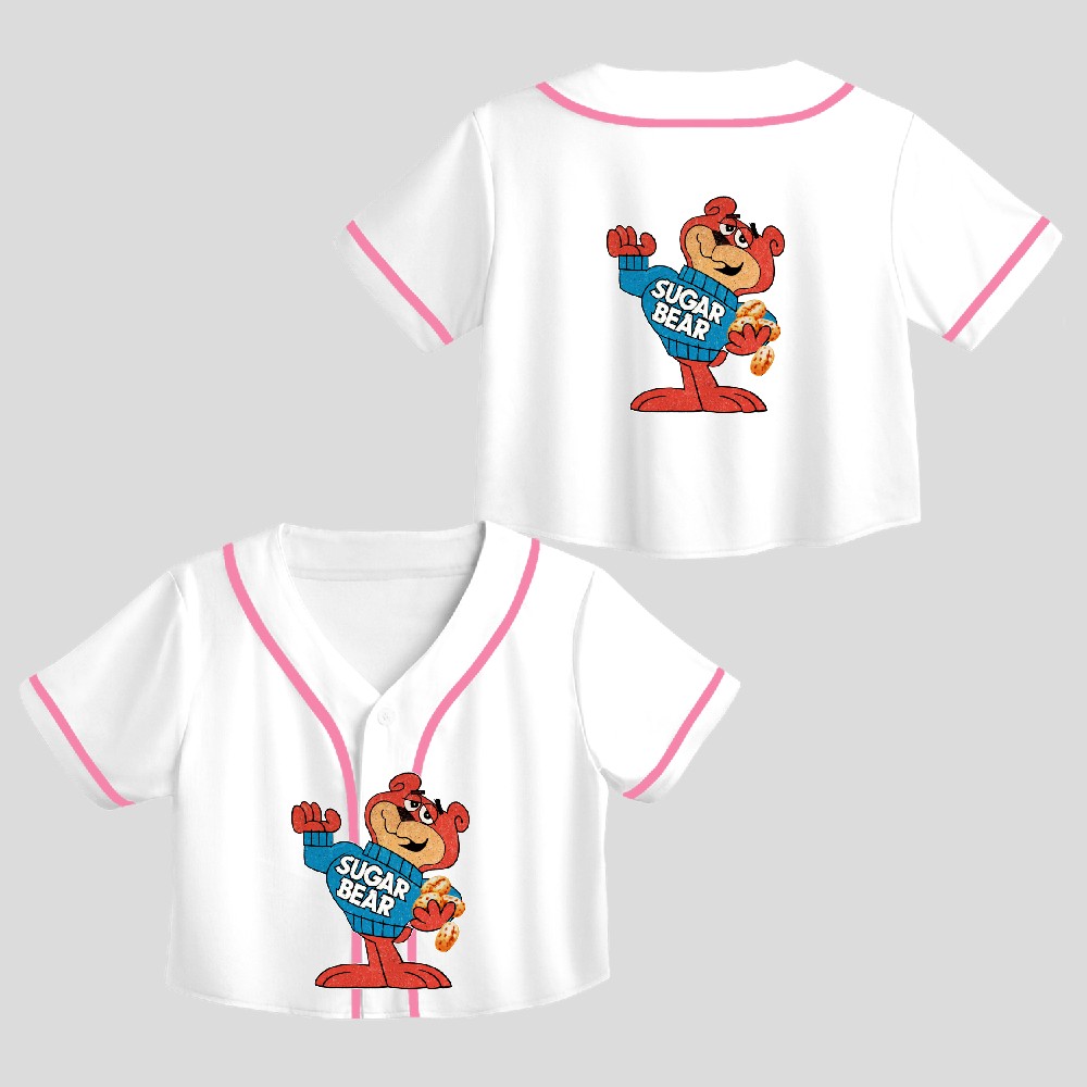 Classic Sugar Bear Super Sugar Crisp Cereal Bear Mascot Character Crop Top Baseball Jersey