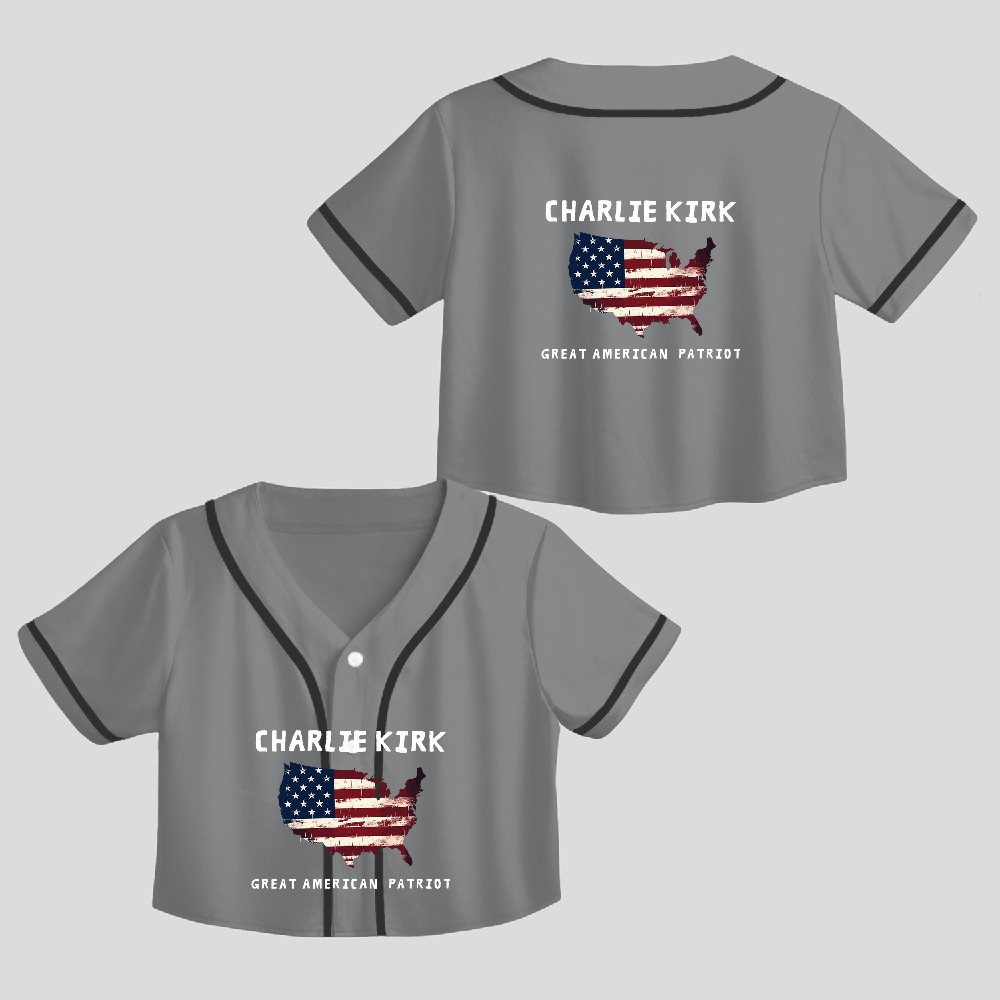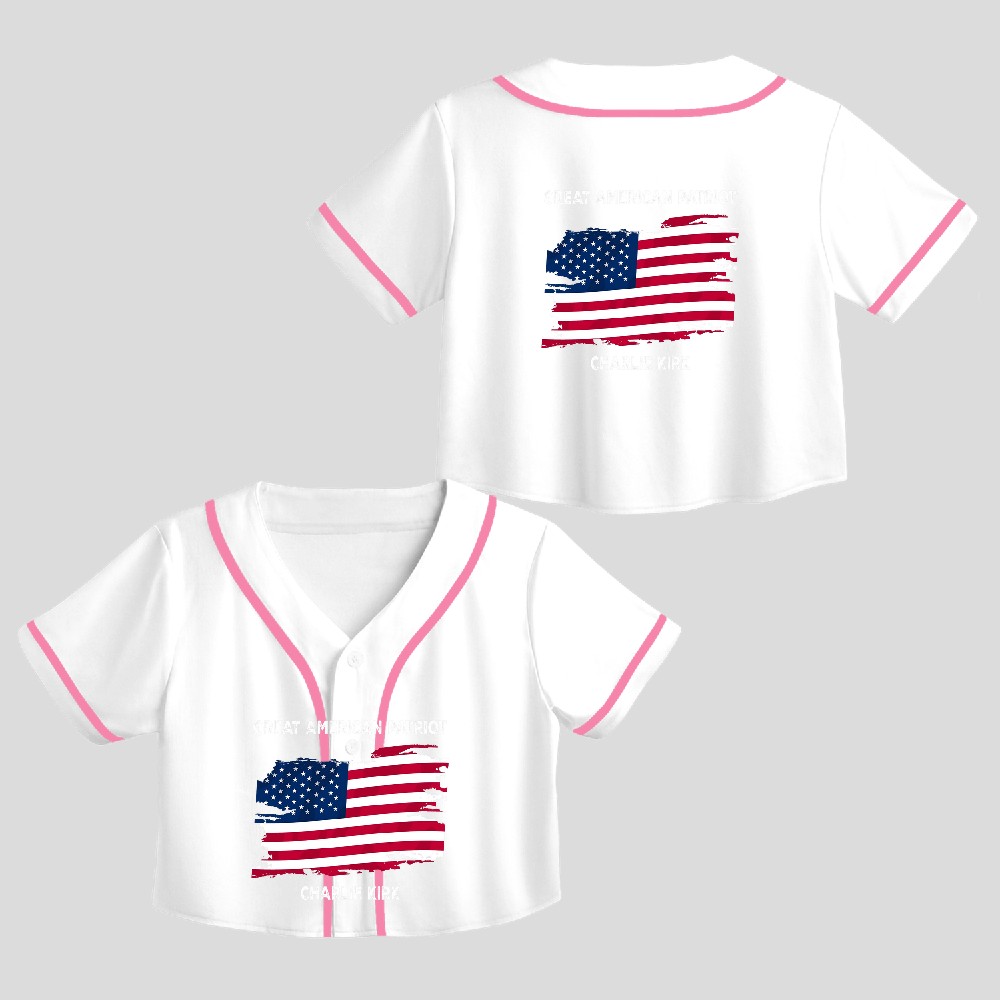 Comfort Colors Great American Patriot Charlie Kirk Usa Flag Crop Top Baseball Jersey