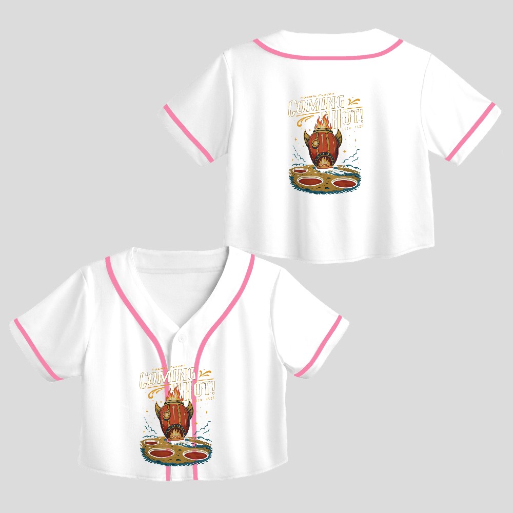 Coming In Hot Pizza Moon Themed Crop Top Baseball Jersey