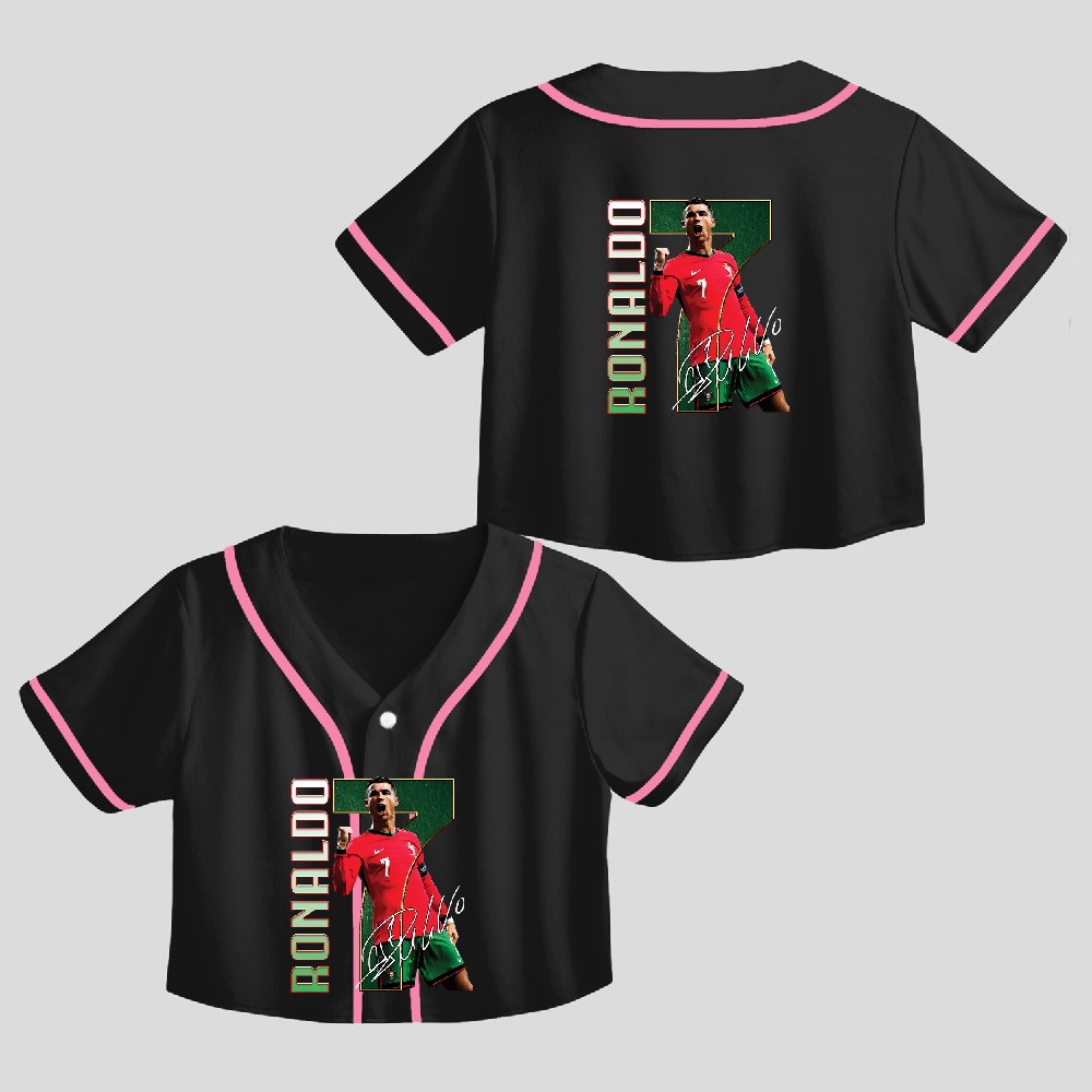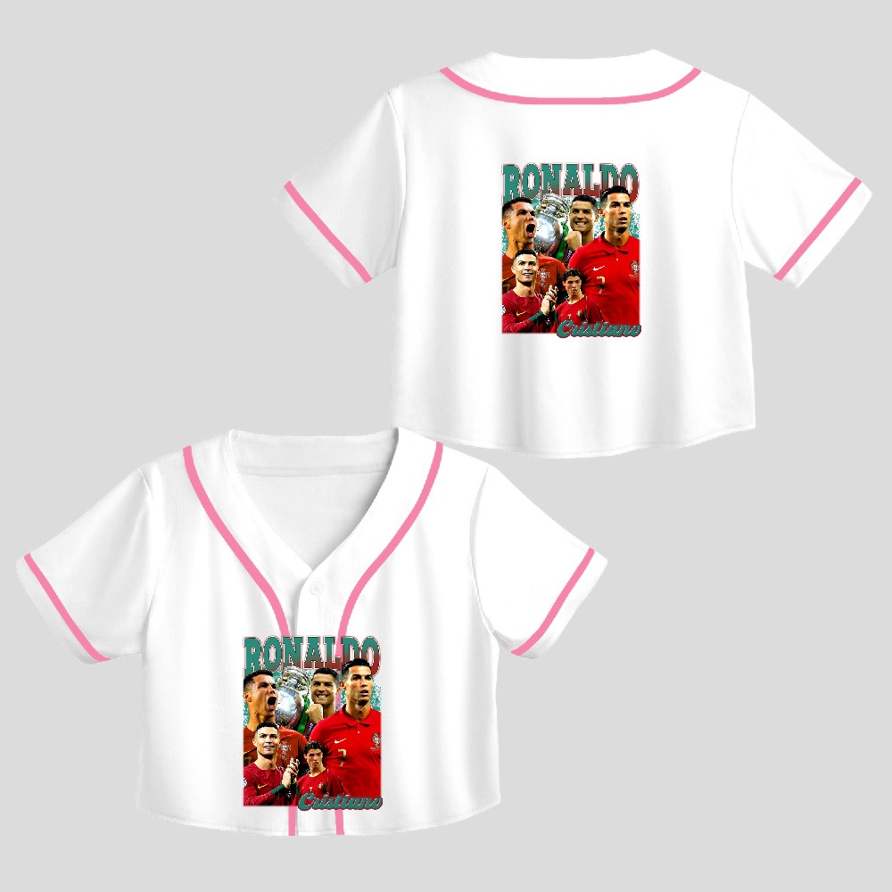 Cristiano Ronaldo Soccer Fan Sports Football Player Crop Top Baseball Jersey