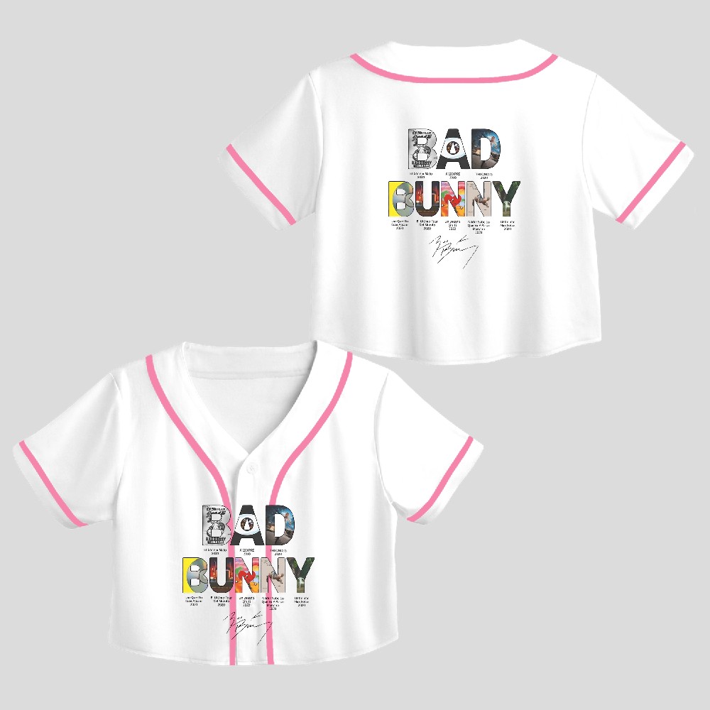 Debtirar Ms Fotos Album Bad Bunny Crop Top Baseball Jersey