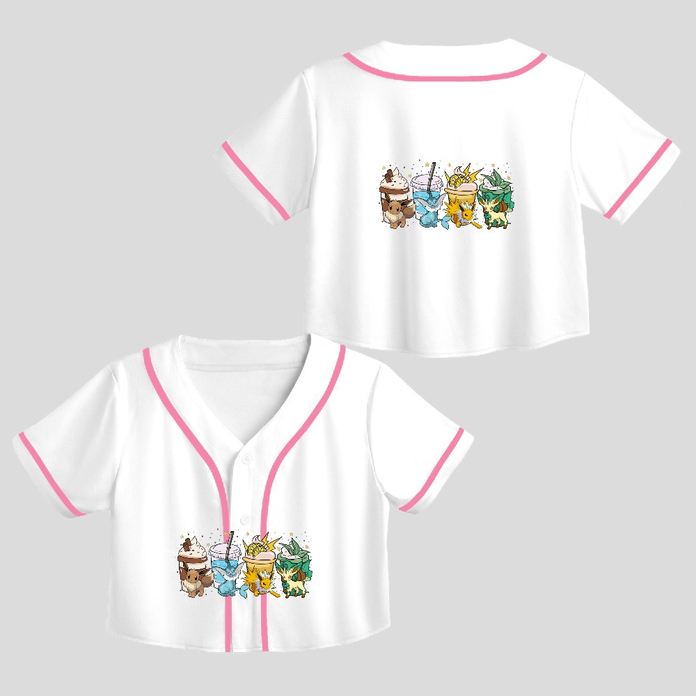 Eevee Evolution Latte Coffee Pocket Monster Pika Anime Crop Top Baseball Jersey