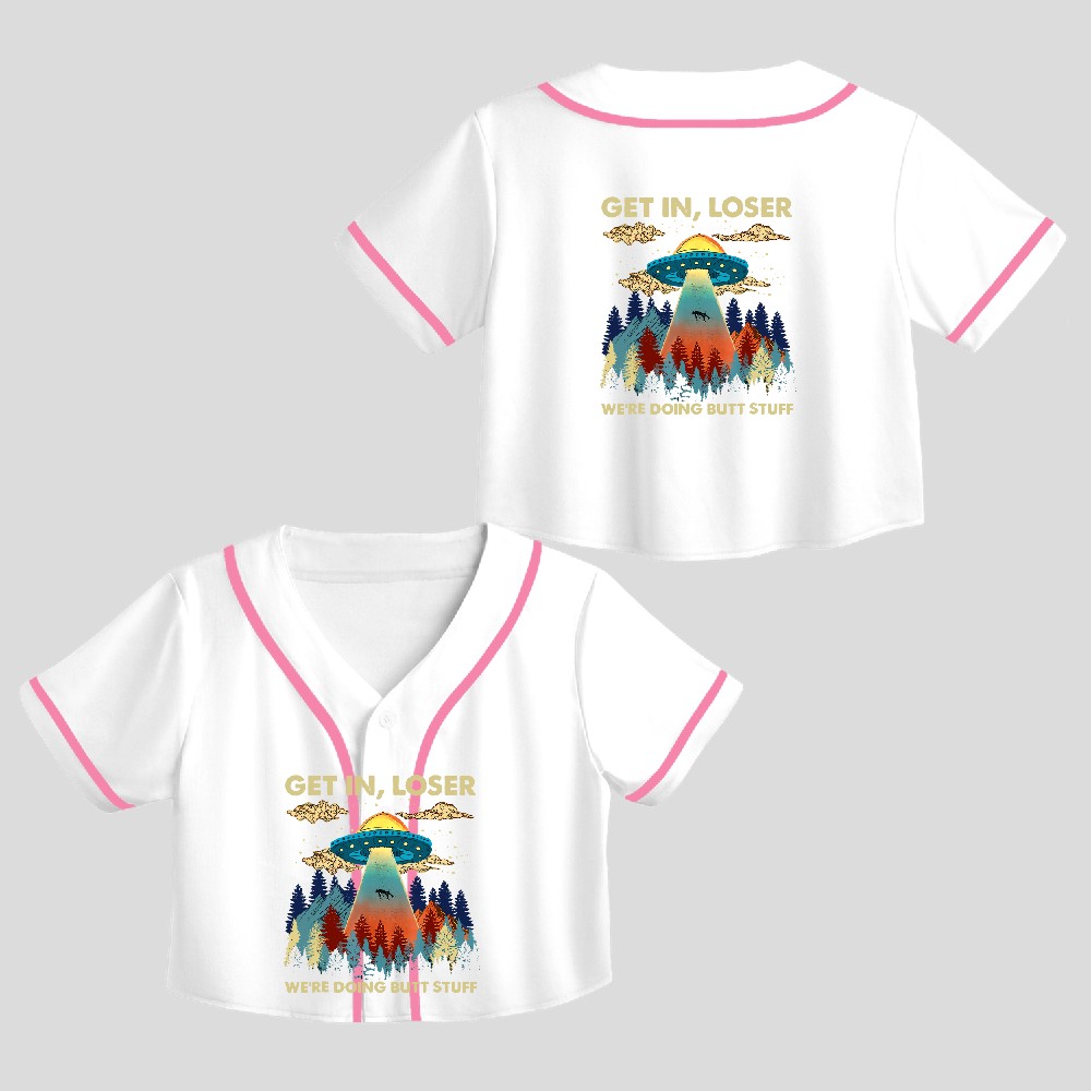 Get In Loser Alien Ufo Crop Top Baseball Jersey
