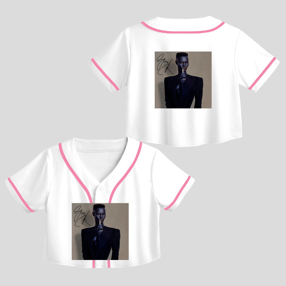 Grace Jones Signature Black Crop Top Baseball Jersey