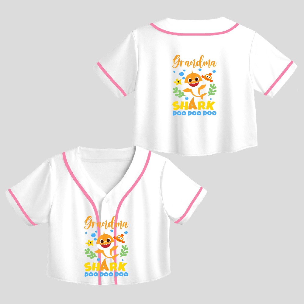 Grandma Shark Baby Shark Family Matching Crop Top Baseball Jersey