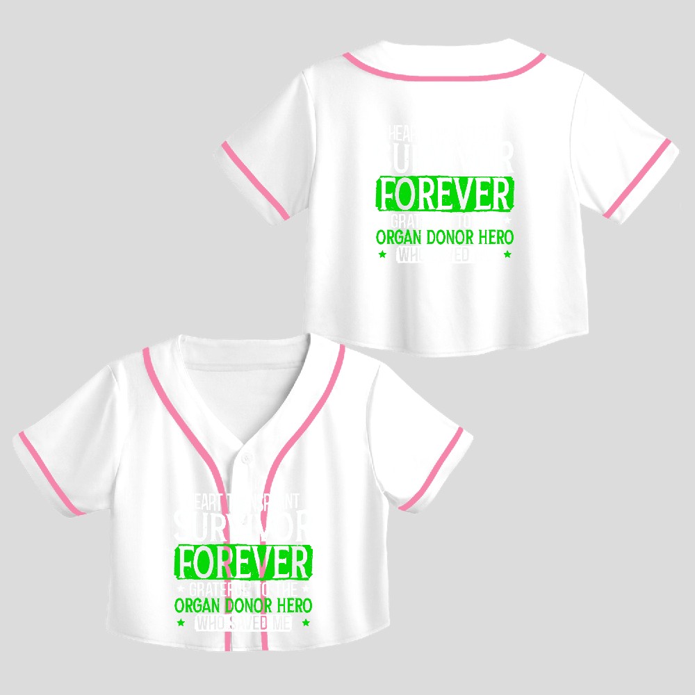 Heart Transplant Survivor Save A Life Organ Donor Crop Top Baseball Jersey