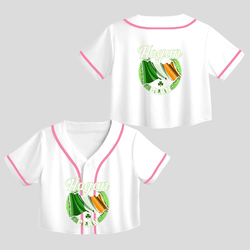 Hogan Surname Irish Last Name Ireland Flag Crop Top Baseball Jersey