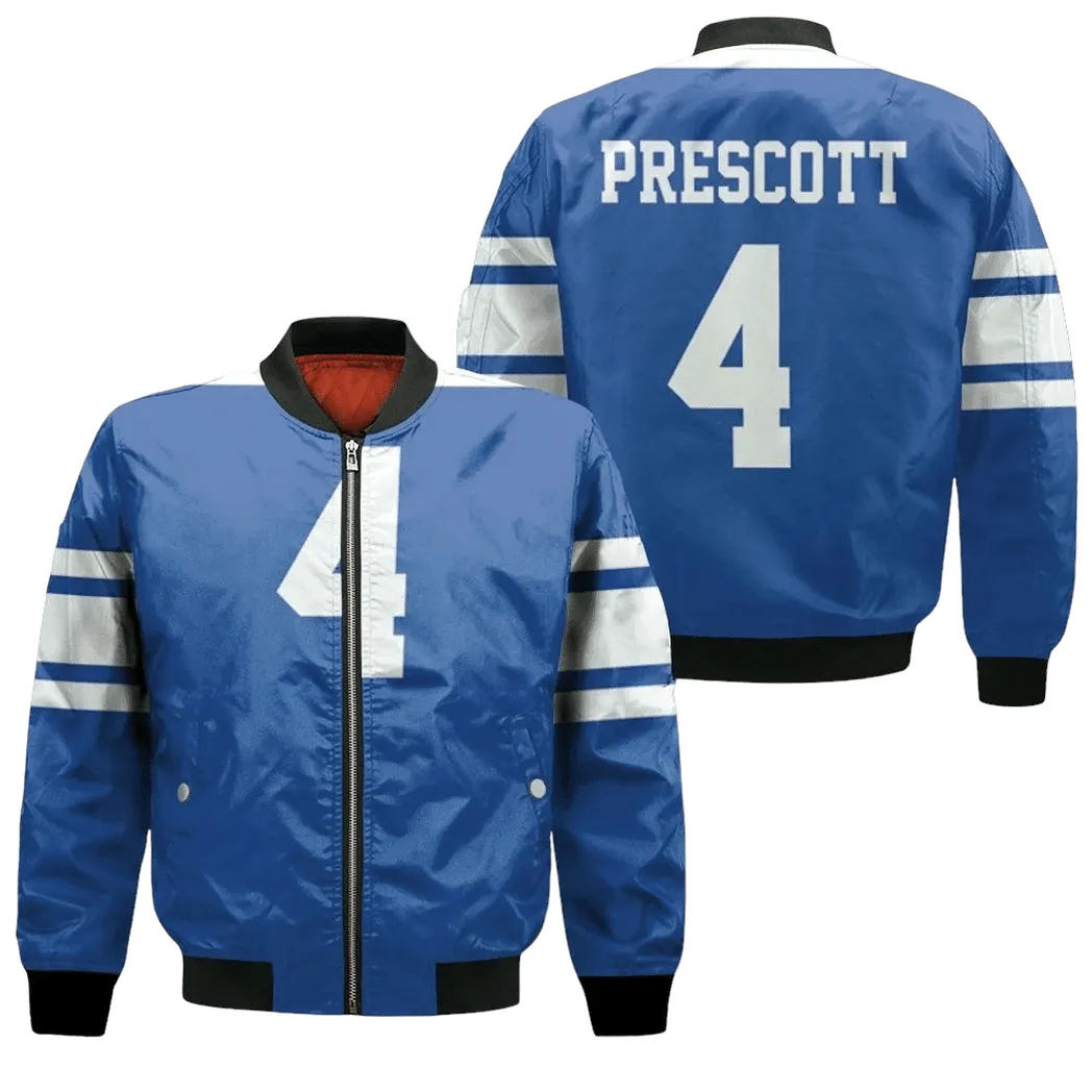 Dallas Cowboys Dak Prescott Royal Rivalry Throwback Jersey Inspired Style Bomber Jacket For Men Women