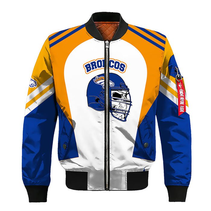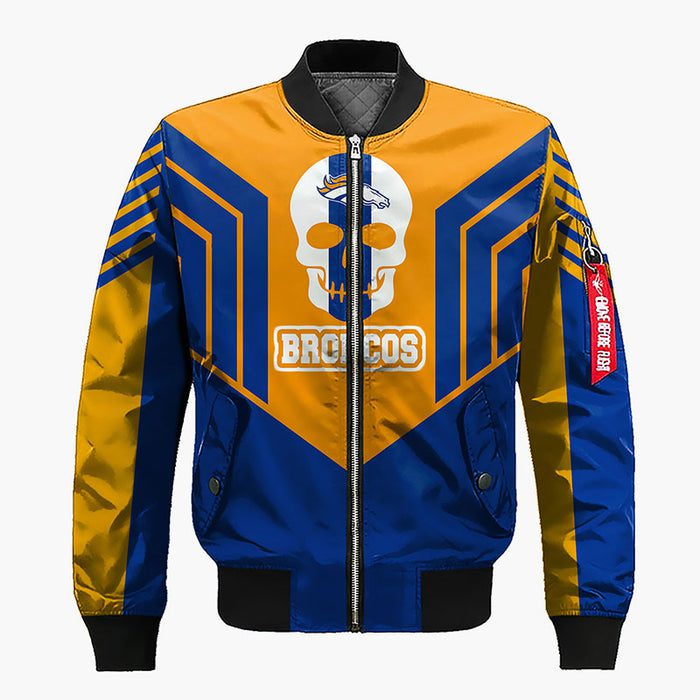 Denver Broncos Skull Blue Orange Unisex Bomber Jacket For Women Men