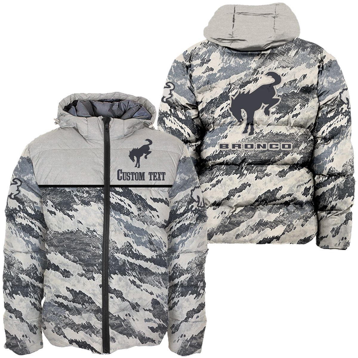 Ford Bronco Gray Camouflage Style Customized Down Jacket