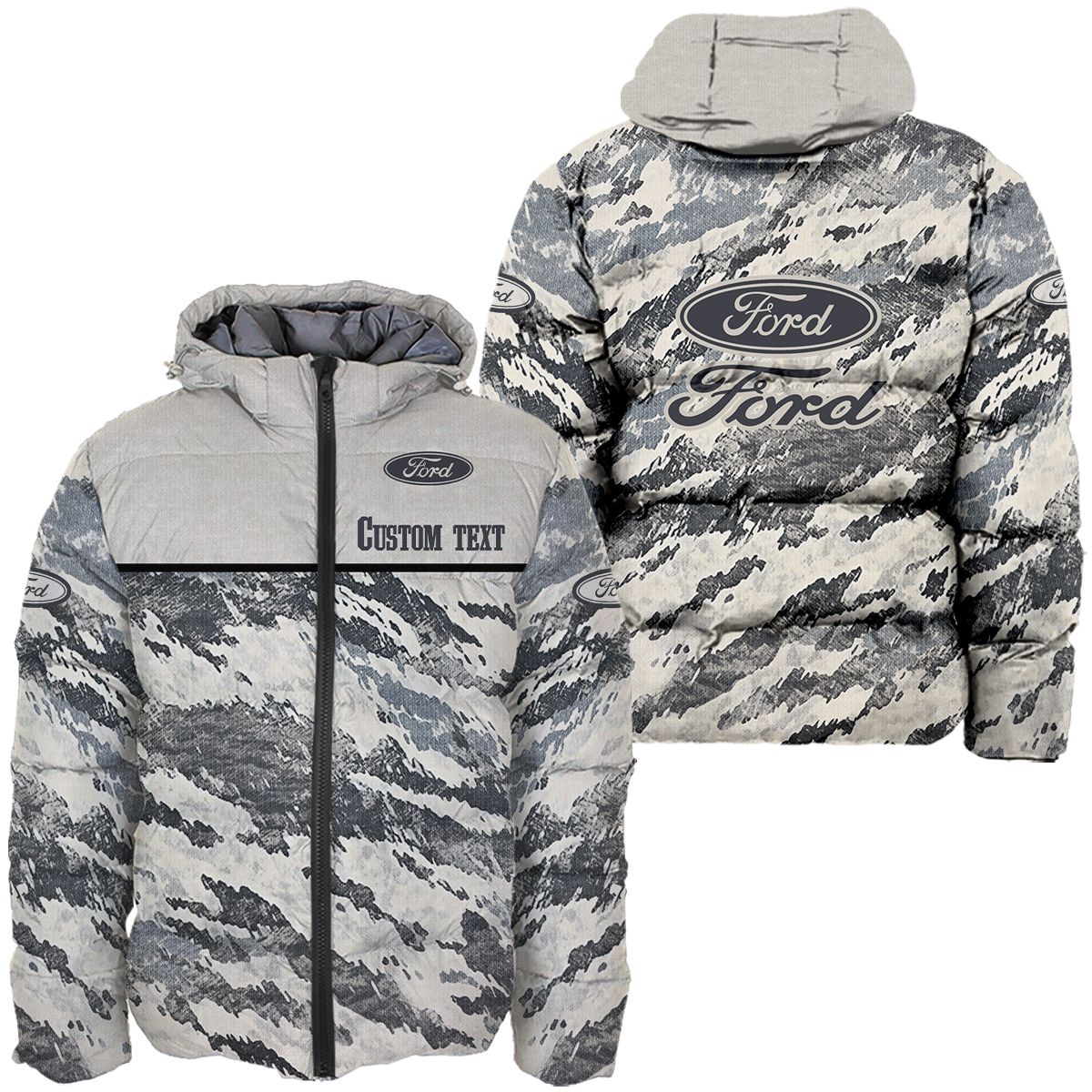 Ford Mustang Gray Camouflage Style Customized Down Jacket