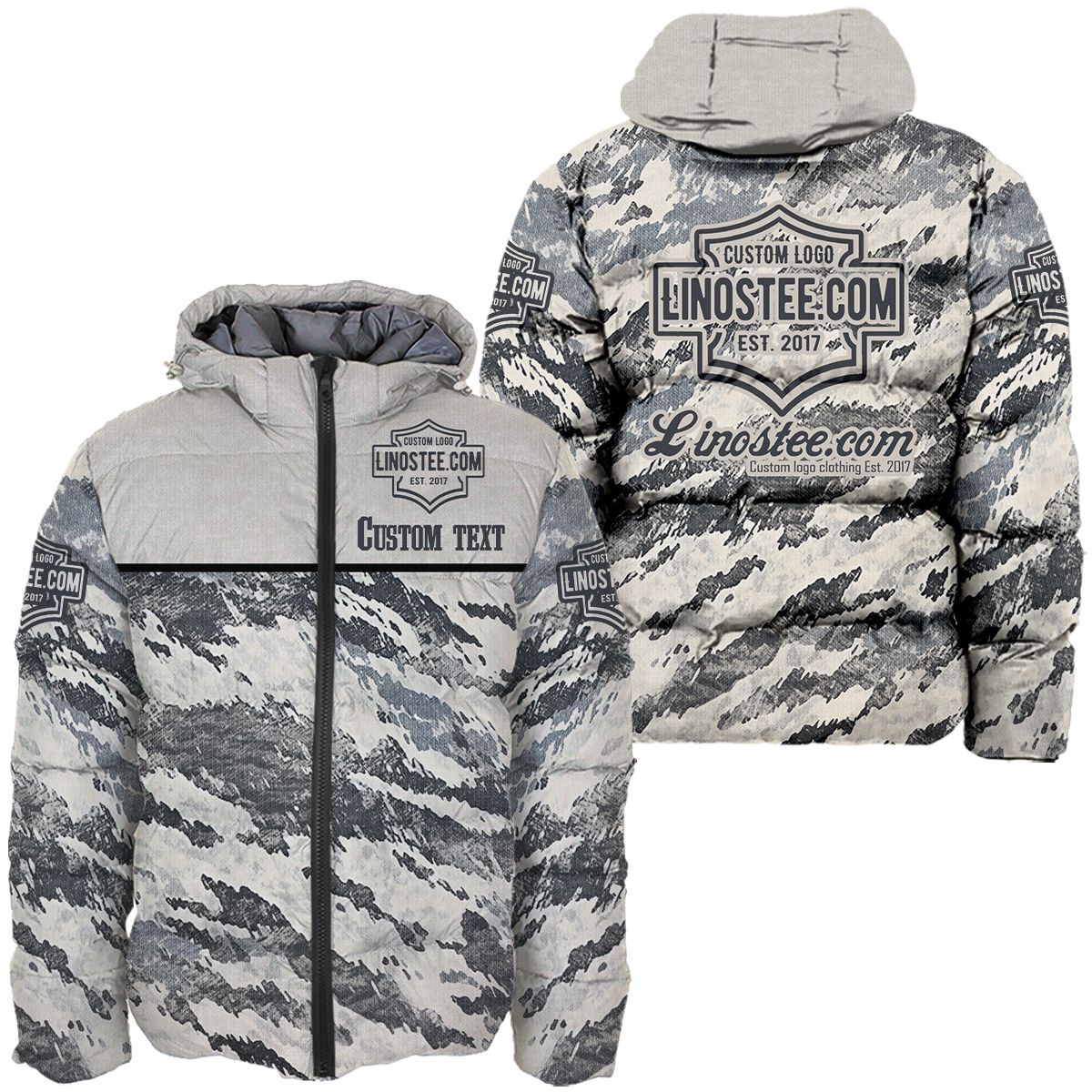 Linostee Gray Camouflage Style Customized Down Jacket