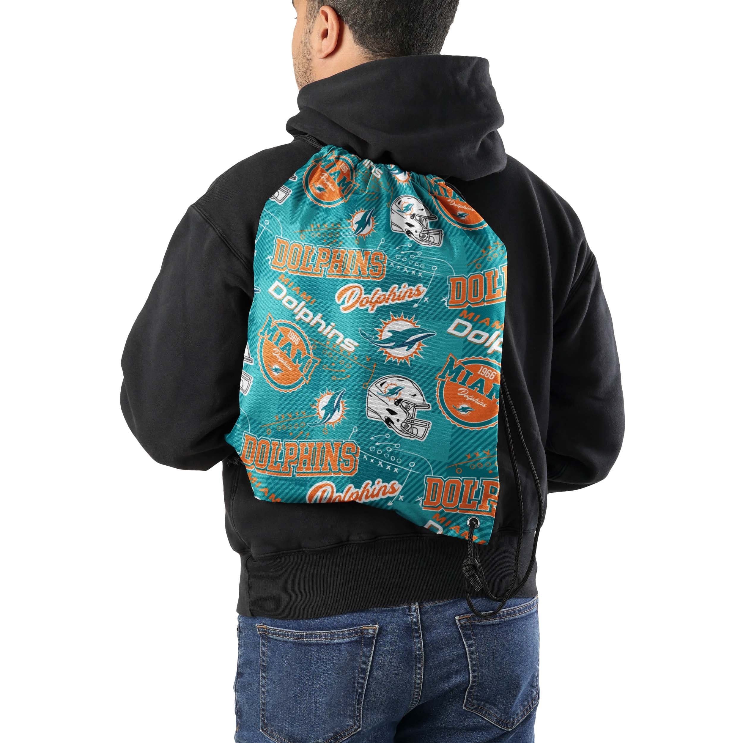 Miami Dolphins NFL Thematic Repeat Print Drawstring Backpack