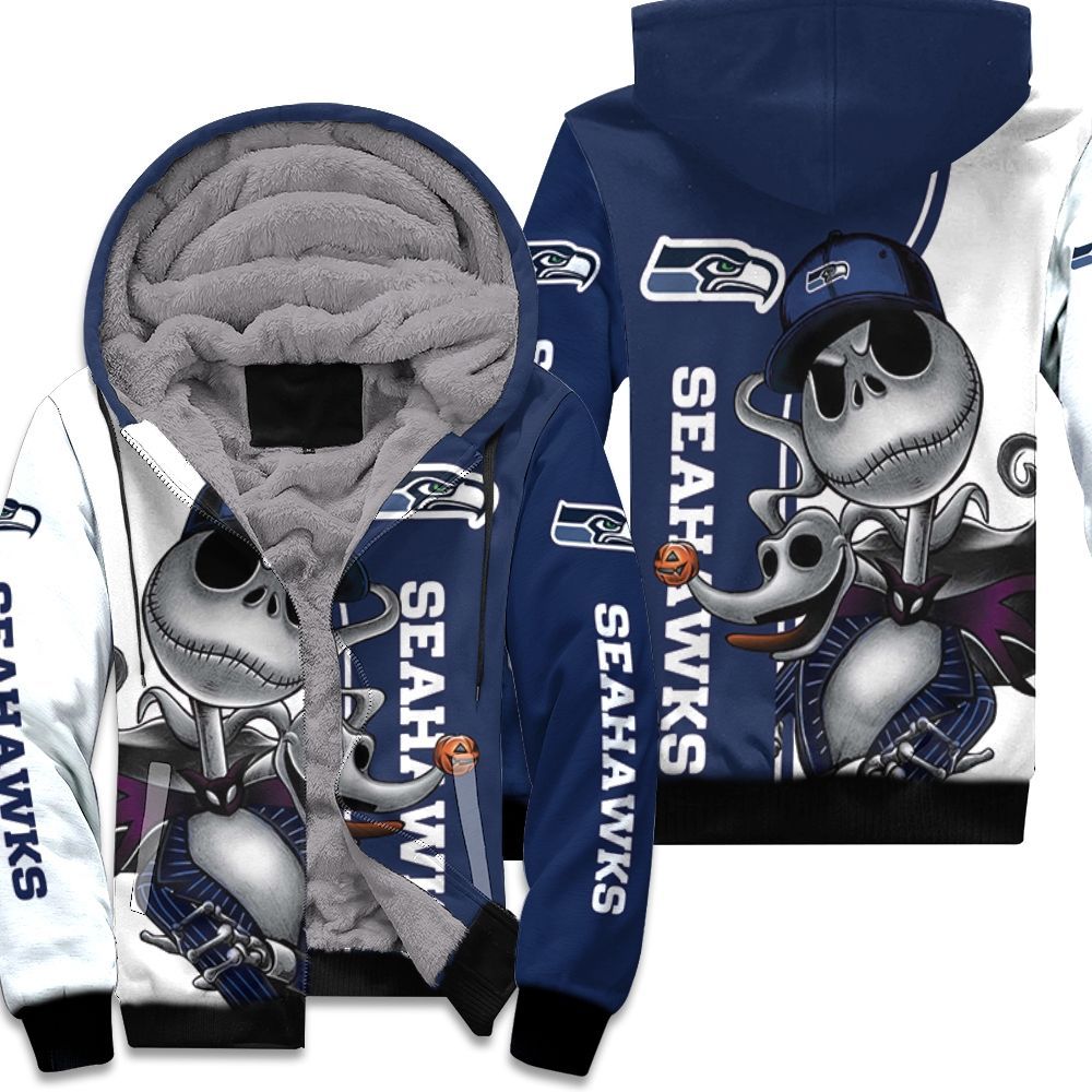 Seattle Seahawks Jack Skellington And Zero Unisex Fleece Hoodie
