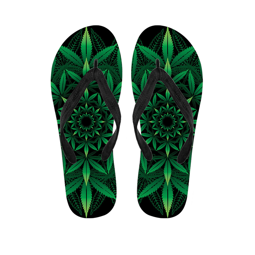 Cannabis Leaf Mandala Print Flip Flops For Men Women