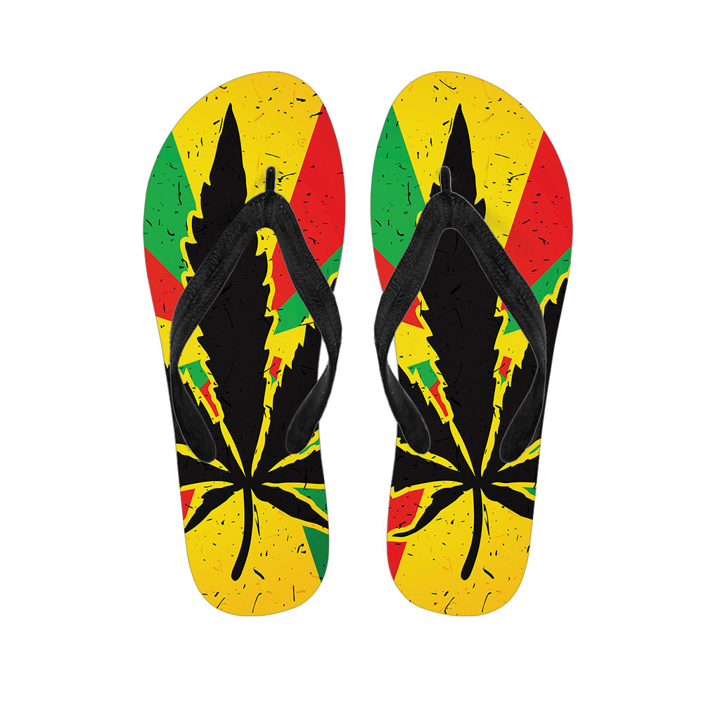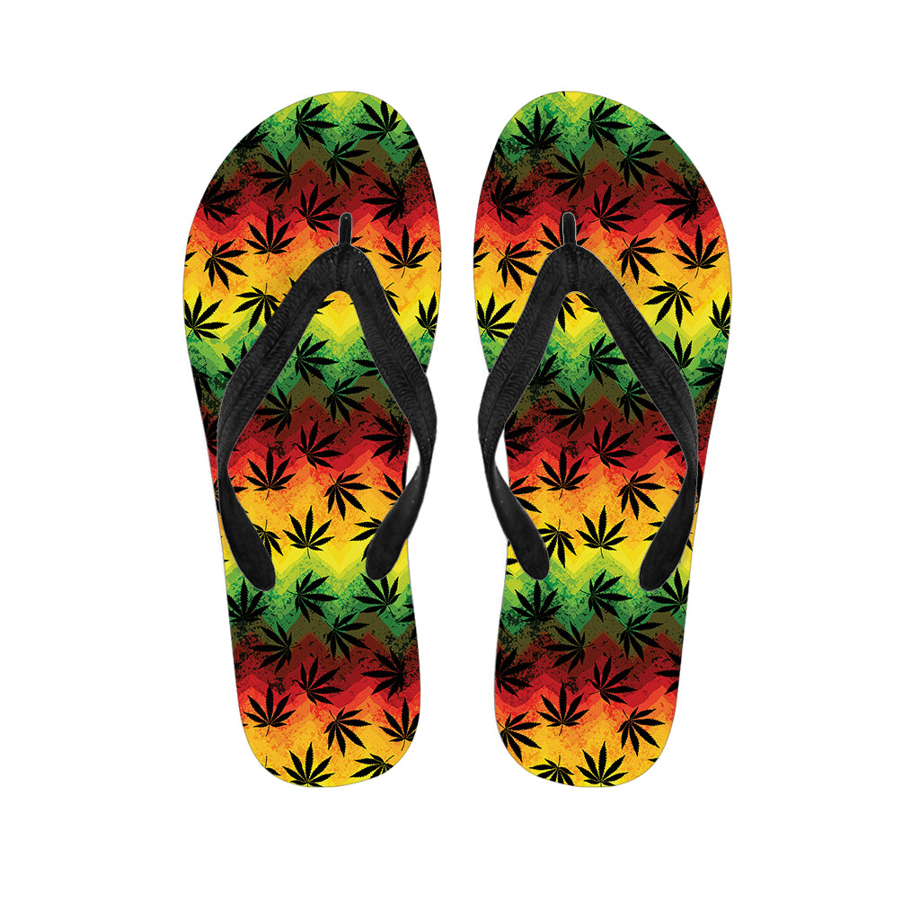 Cannabis Rasta Pattern Print Flip Flops For Men Women