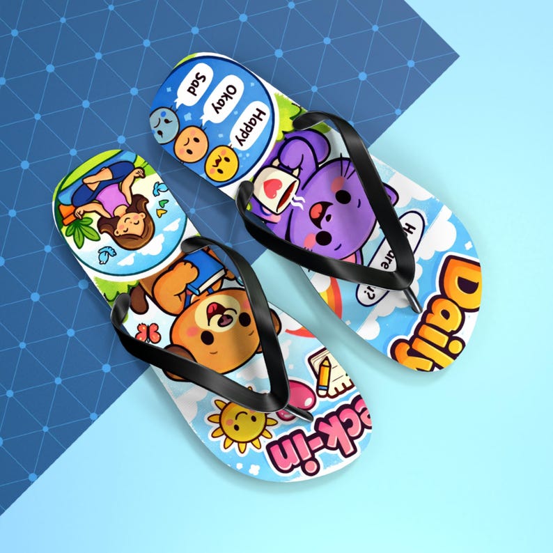 Cartoon Animals Wellness Icons Flip Flops