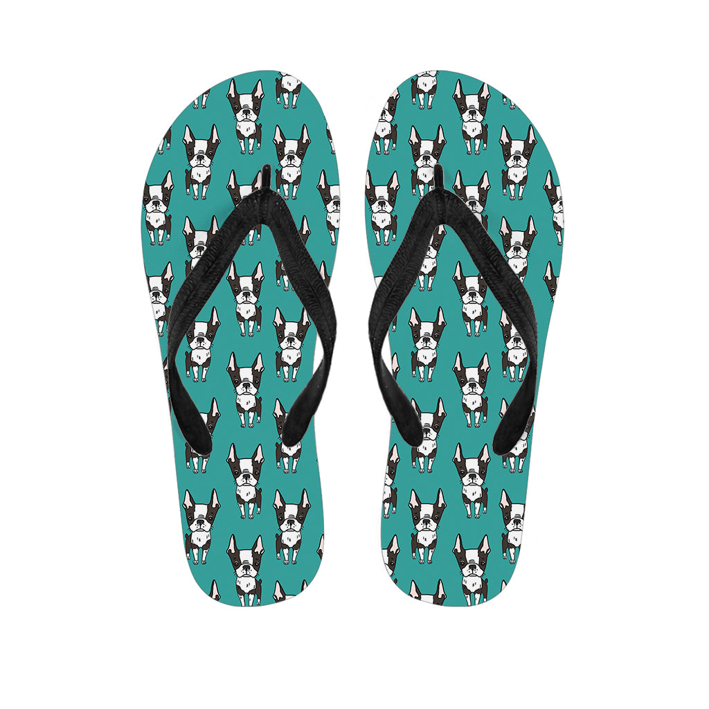 Cartoon Boston Terrier Pattern Print Flip Flops For Men Women