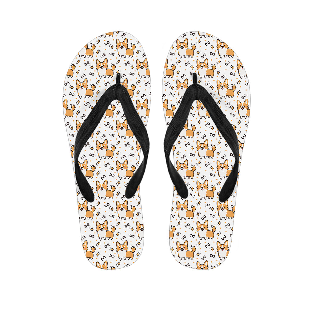 Cartoon Corgi Pattern Print Flip Flops For Men Women