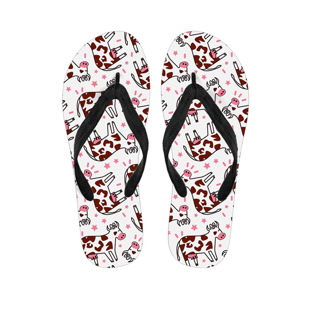 Cartoon Happy Dairy Cow Pattern Print Flip Flops For Men Women