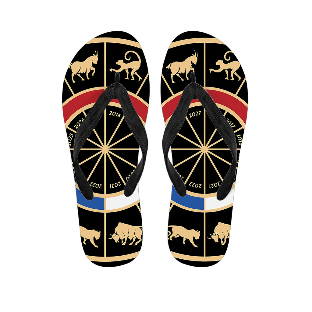 Chinese Zodiac Calendar Signs Print Flip Flops For Men Women