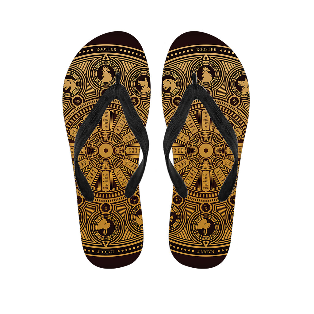 Chinese Zodiac Calendar Wheel Print Flip Flops For Men Women