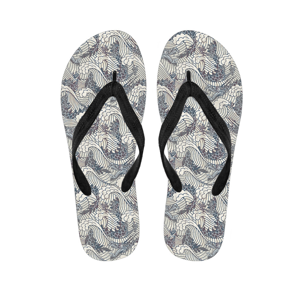 Chinese Sea Dragon Pattern Print Flip Flops For Men Women