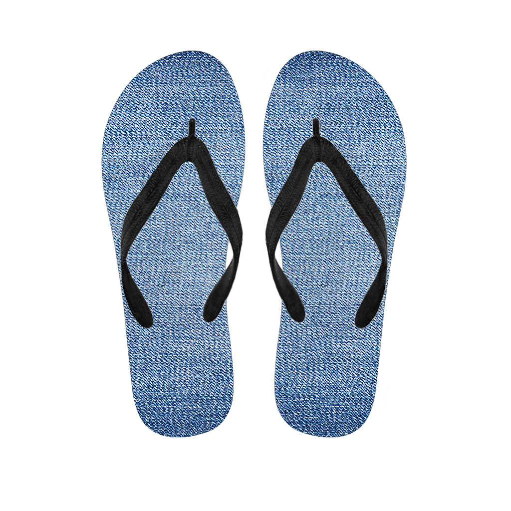 Classic Blue Denim Jeans Print Flip Flops For Men Women