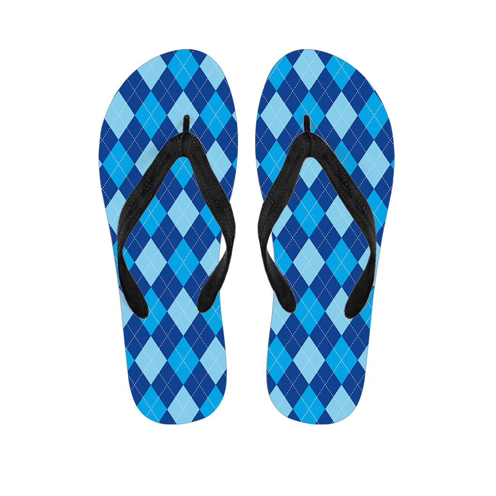 Classic Blue Argyle Pattern Print Flip Flops For Men Women