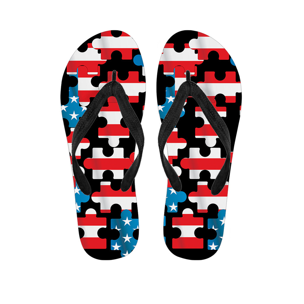 American Flag Jigsaw Puzzle Print Flip Flops For Men Women