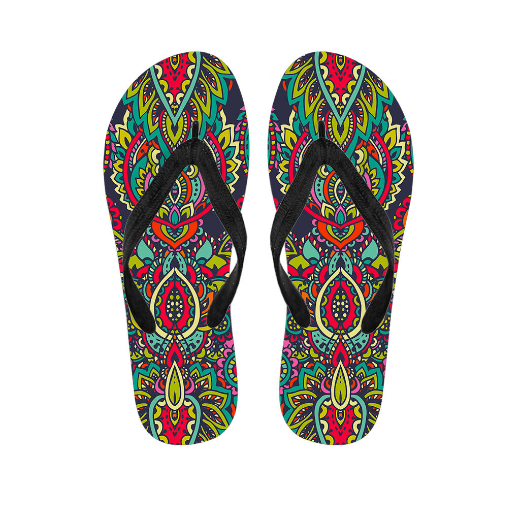 Colorful Floral Mandala Print Flip Flops For Men Women