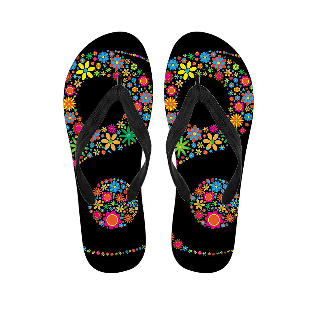 Colorful Flowers Yin Yang Print Flip Flops For Men Women
