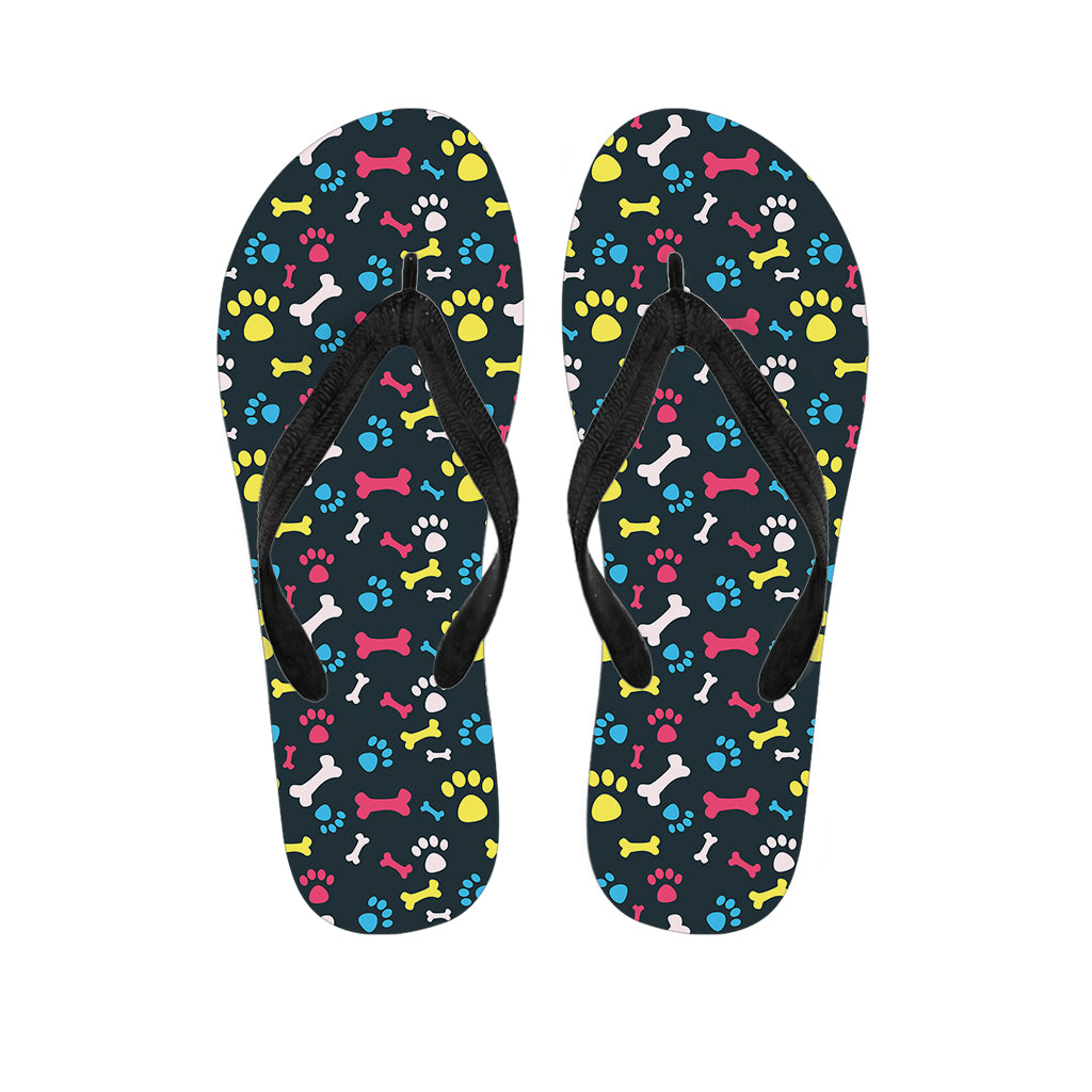 Colorful Paw And Bone Pattern Print Flip Flops For Men Women