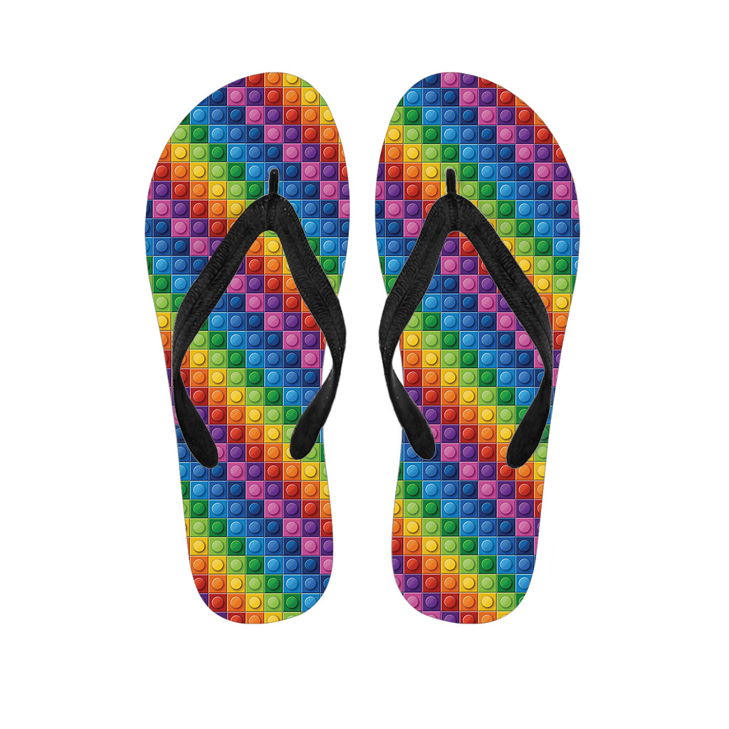 Colorful Plastic Building Blocks Print Flip Flops For Men Women