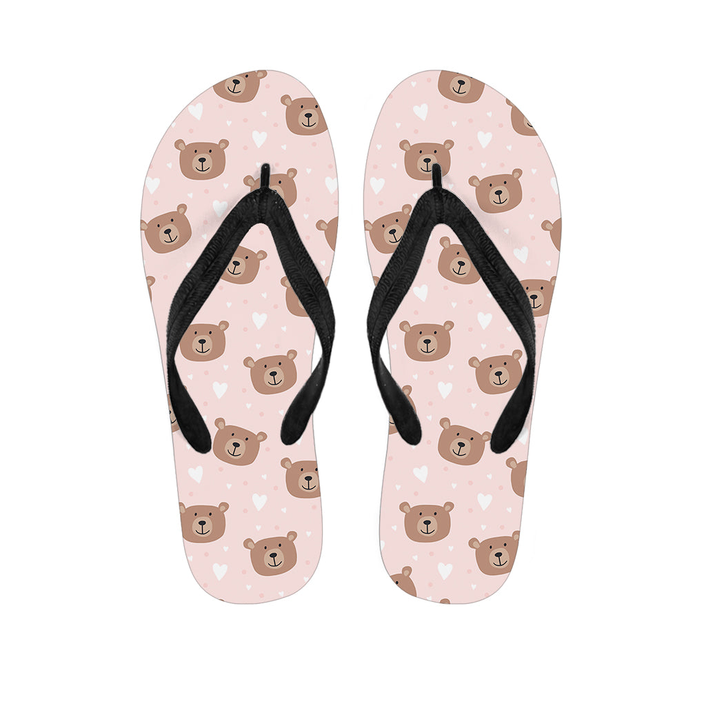 Cute Brown Bear Pattern Print Flip Flops For Men Women