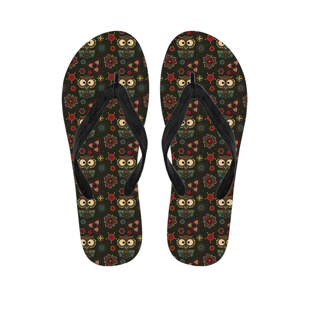 Cute Boho Owl Pattern Print Flip Flops For Men Women