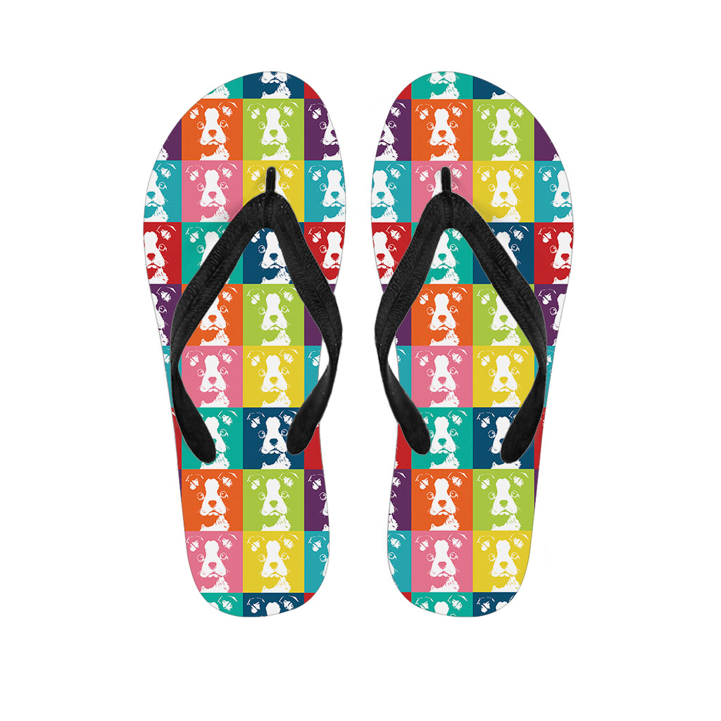 Cute Bull Terrier Faces Pattern Print Flip Flops For Men Women