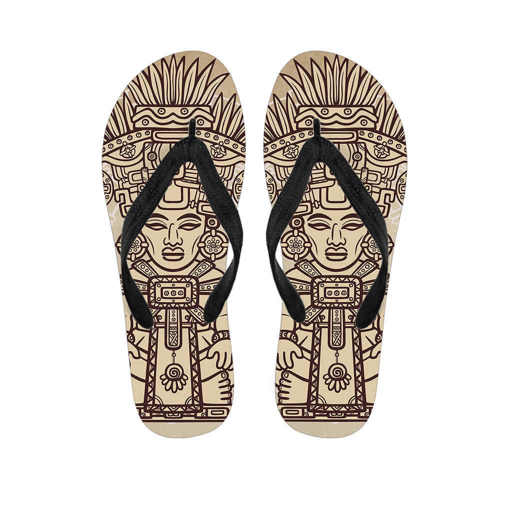 Ancient Mayan Statue Print Flip Flops For Men Women