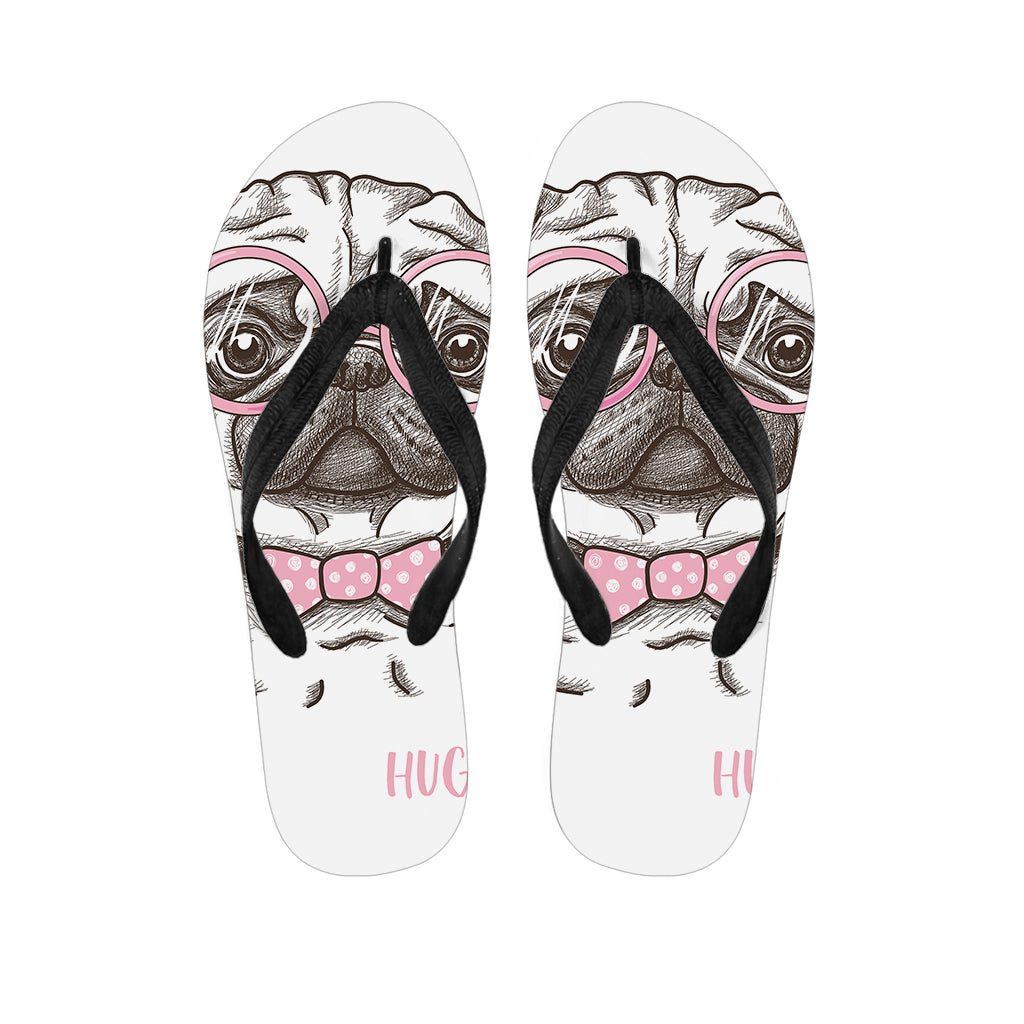 Cute Pug With Glasses Print Flip Flops For Men Women