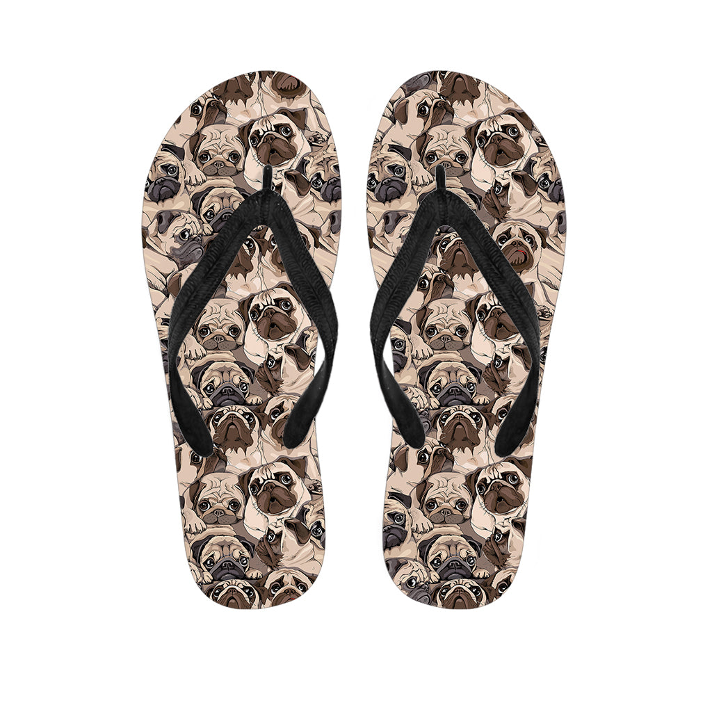 Cute Pug Pattern Print Flip Flops For Men Women