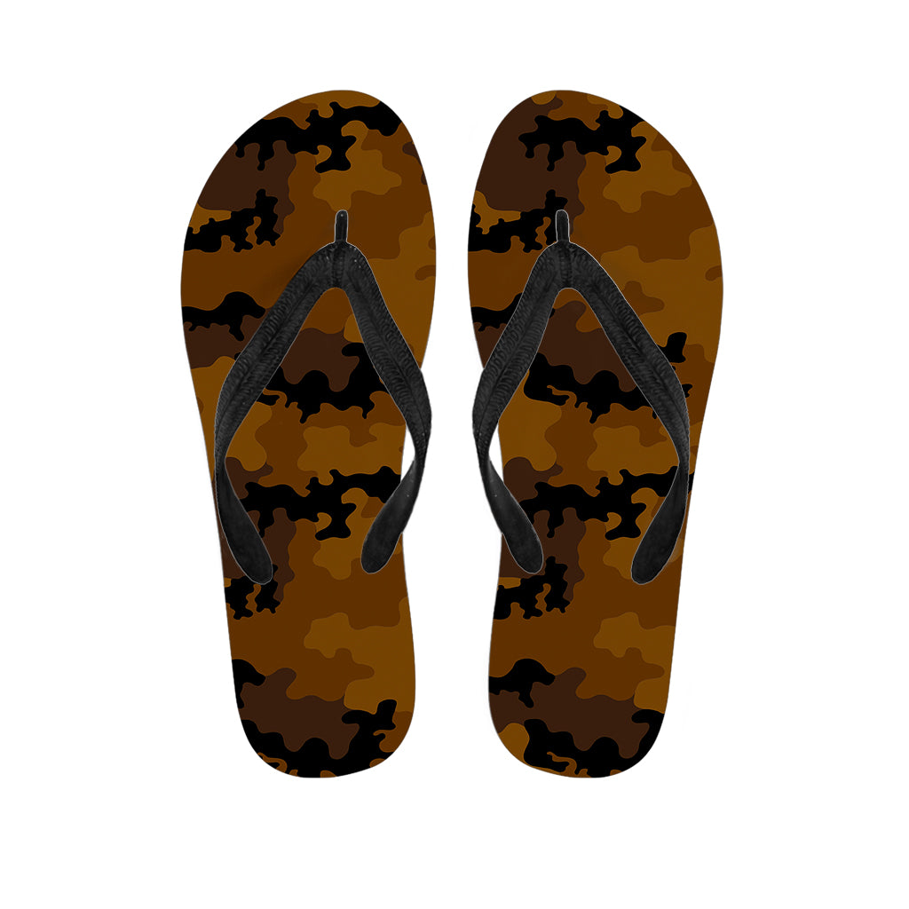 Dark Brown Camouflage Print Flip Flops For Men Women