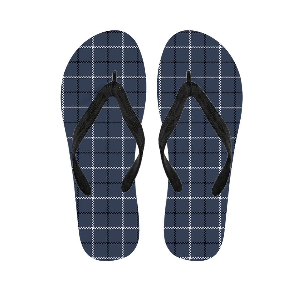 Dark Blue Tattersall Pattern Print Flip Flops For Men Women